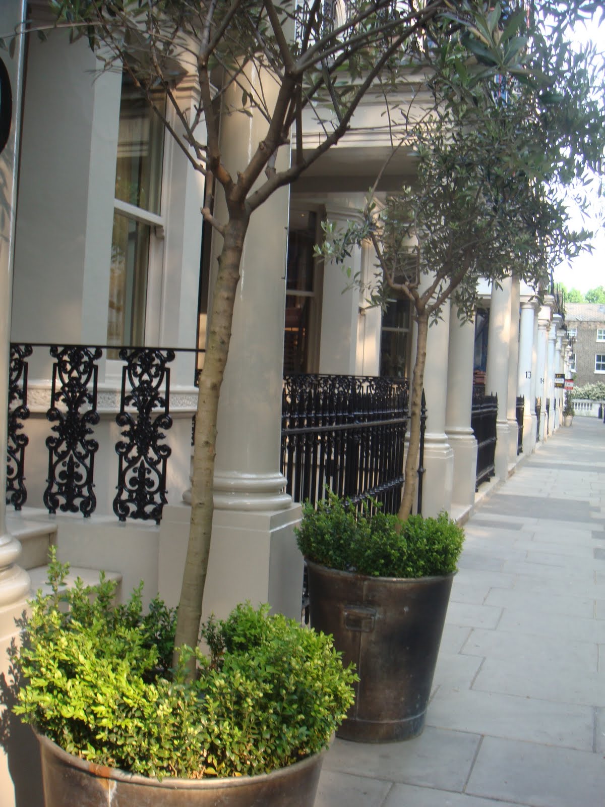 | Topiaries in window boxes. |