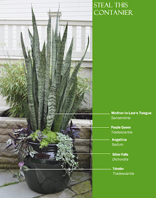 Here is a contemporary container we did this spring for a client in a traditional home, but with a modern landscape. I have provided all the details for you to create this look yourself.