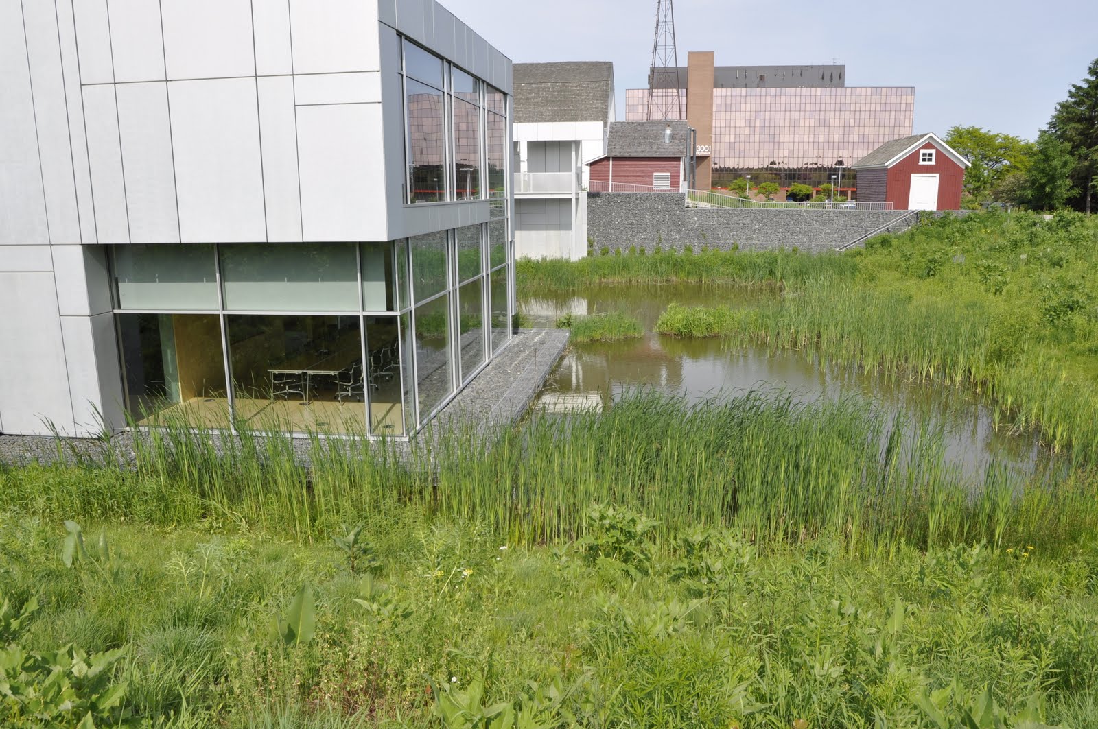| Surrounding the conference room is this pond from watershed in the area. Again natural plantings surround the water. |