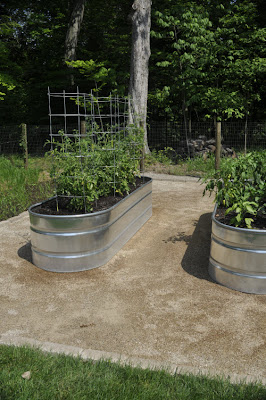 I made a visit out to my client to check on there veggie garden and snapped a few photos to show the progress of the stock tank containers. The plants are growing wonderfully.